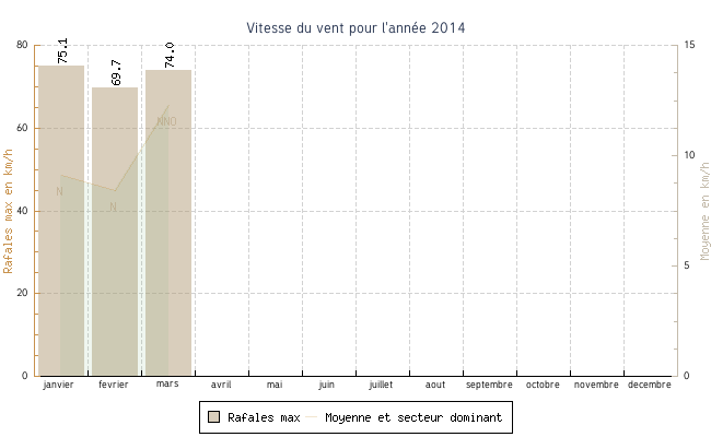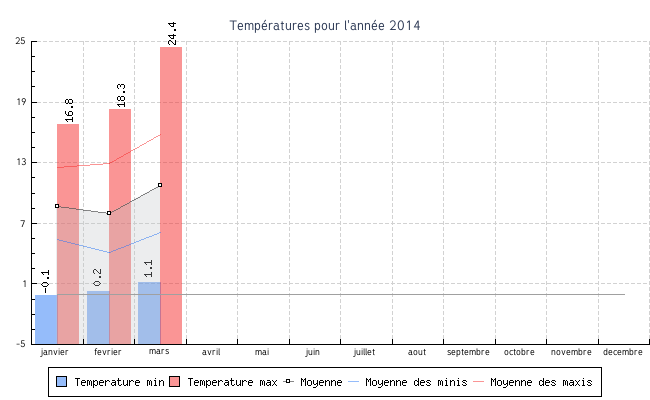 | mars | 1.1 °C | 6.1 °C | 24.4 °C | 15.8 °C | 10.7 °C | 12.3 km/h | 74.0 km/h | NNO |